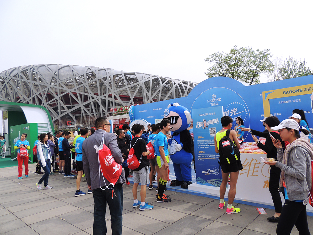 除了專業選手的競技比賽,今年的北京跑更有趣好玩,跑友們裝扮各異,尤其是雷諾表跑團,頭戴代言人孫紅雷的卡通頭像,詮釋更具活力的品牌形象。在雷諾表的互動展區內,為跑友們設置頒獎臺,開展好玩的互動游戲以及拍照裝置留念,跑友們與雷諾表的長腿美眉、卡通人偶雷小諾玩得不亦樂乎,把跑完21公里的疲累拋在腦后,盡情享受輕松、愉悅時光。