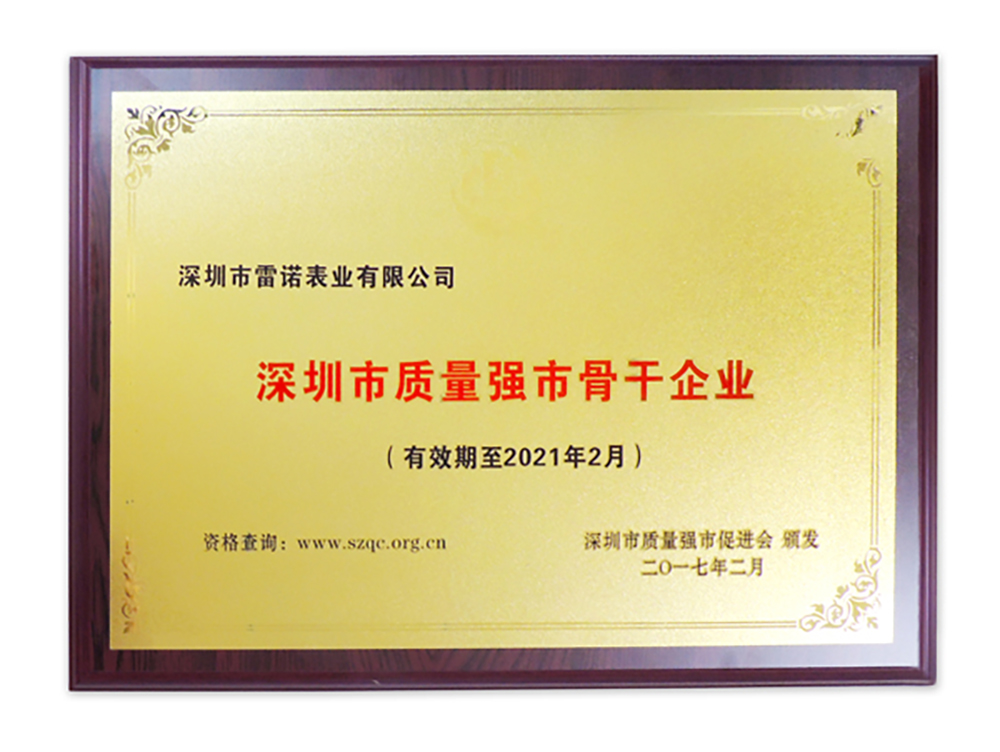 在本次2017年深圳市質量強市促進大會暨深圳質量建設年度盛典上,雷諾表業也榮獲深圳市質量強市骨干企業、深圳市質量強市卓越貢獻獎兩項殊榮,這是對雷諾表業以往的企業成績作出的肯定和嘉獎,更是激勵雷諾表再接再厲的強大動力,雷諾表業將繼續為鐘表質量及深圳質量把好質量關,以強質量鑄強企業!