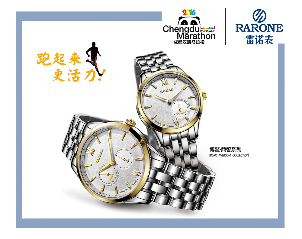 雷諾表作為商務(wù)手表領(lǐng)域的專業(yè)品牌,倡導(dǎo)職場(chǎng)人士8小時(shí)之外的健康生活,而跑步就是最簡(jiǎn)單、最容易參與的運(yùn)動(dòng)方式。2016年3月,雷諾表牽手天府之國(guó)——四川,正式成為2016年“成都雙遺馬拉松官方指定計(jì)時(shí)用表”!